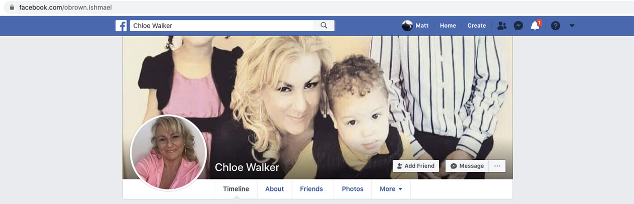 Here is another example. User "Chloe Walker" has the URL "Obrown.Ishmael." This person is not named Chloe Walker.