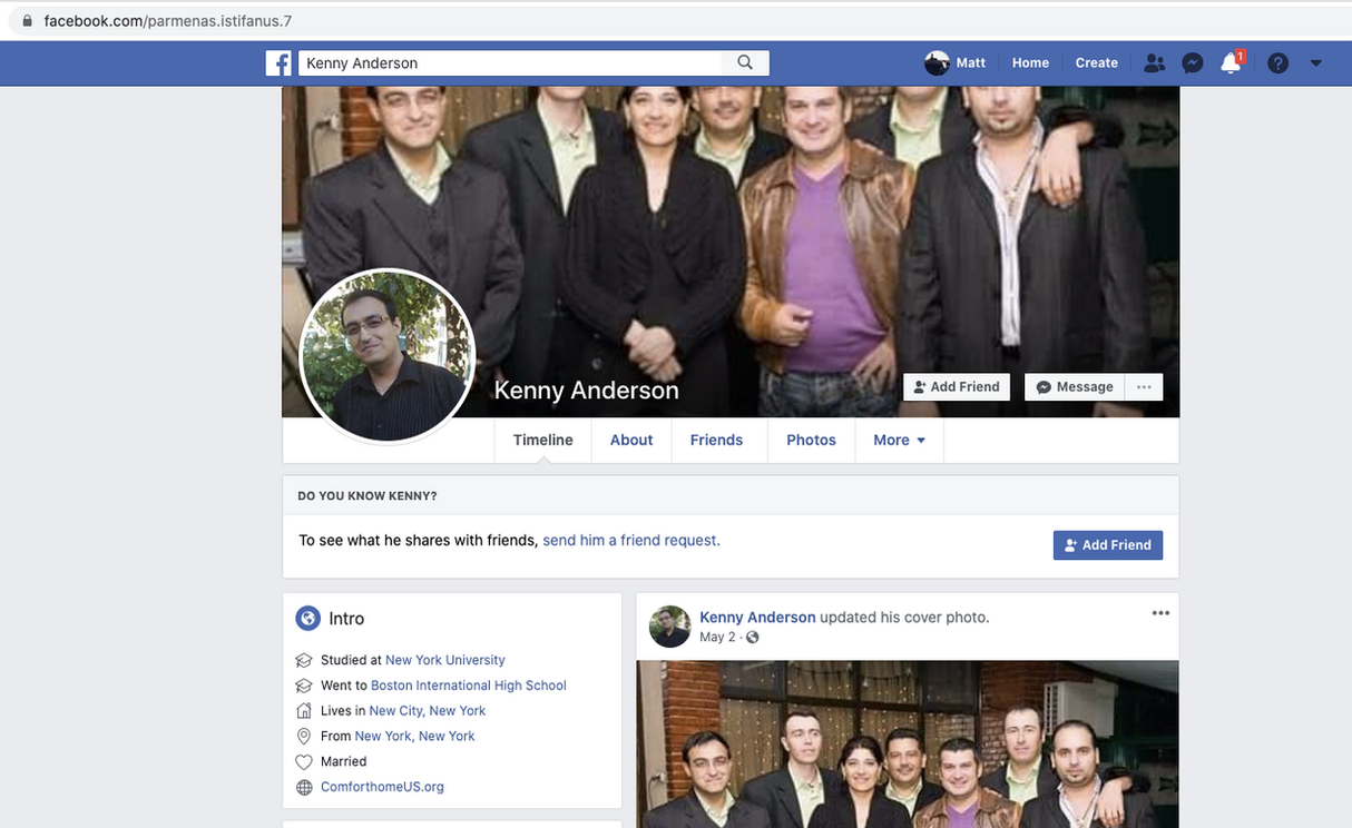 Look at the name of the user ("Kenny Anderson") and the name of his URL ("parmenas.istifanus.7"). Kenny is actually a scammer based in Nigeria and has been unable to change his URL. This a huge red flag and is the most obvious signal. Surprisingly, this happens a lot.